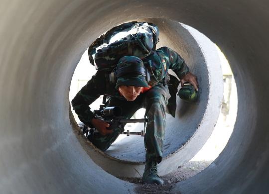 狙擊手素有“槍王之王”的美譽(yù),每一個(gè)“槍王”都是在極限挑戰(zhàn)、與高手較練中練出來、打出來的。潛行狙擊課目,要求狙擊小組120秒內(nèi),在160米至350米遠(yuǎn)距離,攜帶彈匣和2個(gè)背囊協(xié)同依次通過低樁網(wǎng)、排水管道,利用狹小管道對(duì)半遮蔽頭部靶進(jìn)行射擊。