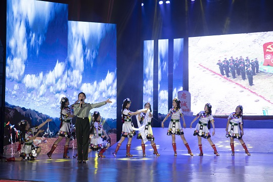 本次活動(dòng)由武警青??傟?duì)文藝輕騎兵、青海省演藝集團(tuán)、海西歌舞團(tuán)等進(jìn)行表演。文藝演出在雄壯震撼的歌舞《向著偉大的夢(mèng)想》中拉開帷幕,情景表演唱《祖國召喚,我喊到》、舞蹈《追風(fēng)》《我的鐵甲夢(mèng)》、紅歌聯(lián)唱《十送紅軍》《英雄贊歌》《不忘初心》、音樂快板《強(qiáng)軍征程新風(fēng)貌》、馬頭琴演奏《草原歡歌》、川劇《變臉》等節(jié)目輪番上演。
