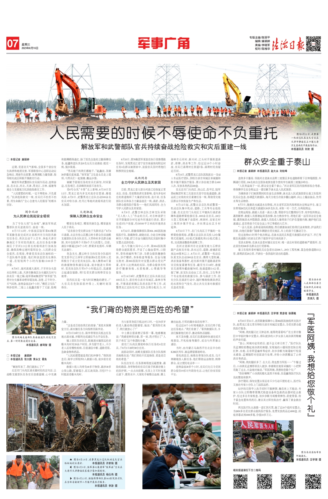 解放軍和武警部隊(duì)官兵聞令而動(dòng)、連續(xù)奮戰(zhàn),在北京、河北、天津、黑龍江、吉林、福建等地全力支援地方抗洪搶險(xiǎn)救災(zāi)工作。