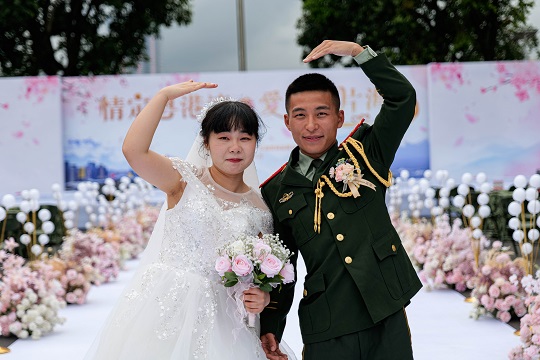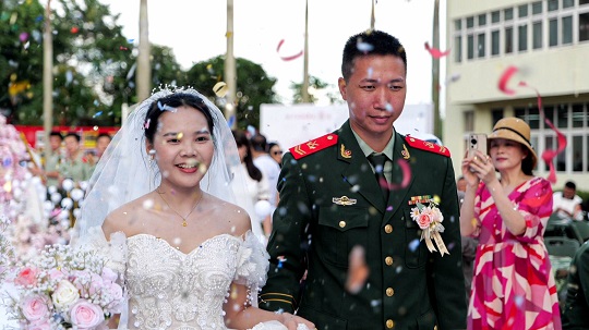 執(zhí)法員邱猛猛的愛人吳佳怡在致辭中說,這次集體婚禮將成為他們生命中最美好最深刻的記憶,同時,她也將繼續(xù)激勵自己的愛人扎根海疆,為祖國作出更大的奉獻。話語樸實無華但擲地有聲,引起現(xiàn)場所有人共鳴。