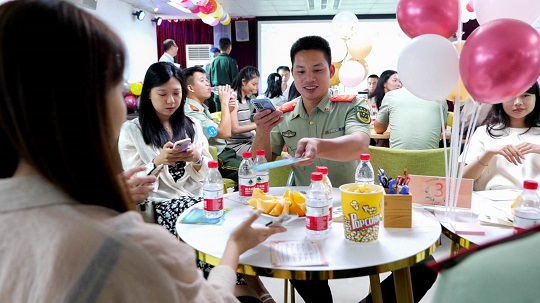 踩著音符,迎著微風,應(yīng)邀出席的女嘉賓走進廣東海警局,在海天的見證下共赴一場浪漫的海疆之約。在“相約鵬城海疆·共敘幸福人生”交友聯(lián)誼會活動現(xiàn)場,男女嘉賓領(lǐng)取屬于自己的“緣分號碼牌”,圍坐交流。廣東海警局執(zhí)法員馬運澤來到女嘉賓的座位旁,大方介紹自己,女嘉賓也積極回應(yīng)。經(jīng)過一番交流,雙方互有好感,一同拍下合影。