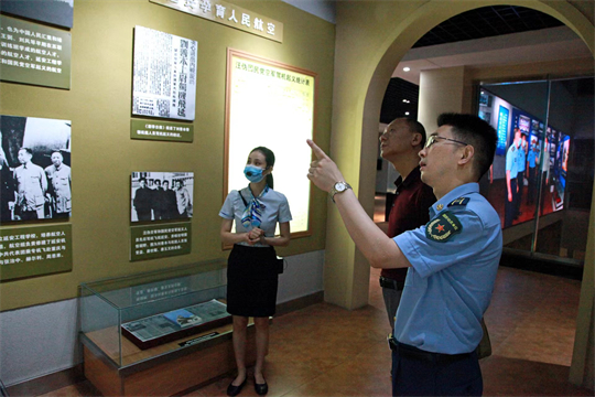 圖為周昆訓(右一)生前積極參與“紅色資源挖掘工程”,深入紀檢教育場館尋找紅色資源。吉林省軍區(qū)政治工作局供圖