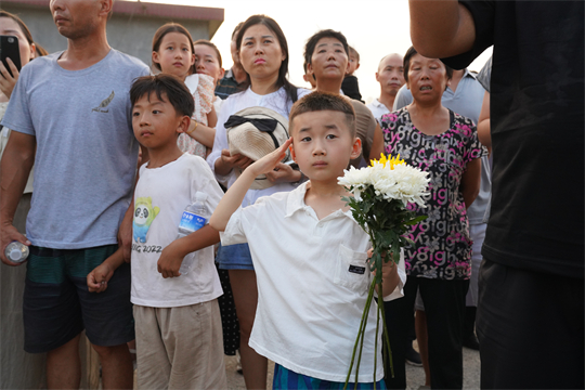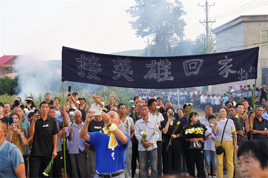 8月16日,跨越近2000公里,吉林省舒蘭市人民武裝部上校政治委員周昆訓烈士“回”到家鄉(xiāng)河南省確山縣。在高速公路口、街道兩旁、竹溝革命烈士陵園門前,當?shù)馗刹咳罕娛峙蹙栈ǎ又一隁w來。