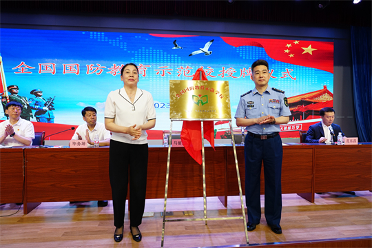 圖為周昆訓(生前)參加舒蘭市第一高級中學全國國防教育示范校授牌儀式。吉林省軍區(qū)政治工作局供圖