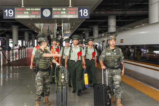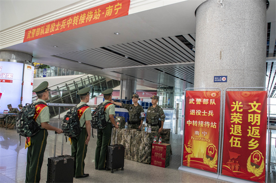 9月1日,武警廣西總隊南寧支隊熱烈歡送2023年度夏秋季退役士兵光榮返鄉(xiāng),通過組織歡送儀式、設(shè)立中轉(zhuǎn)接待站等方式,確保退役士兵返鄉(xiāng)安心、暖心。退役士兵戀戀不舍地離開他們揮灑汗水、奉獻青春的熱土,踏上返鄉(xiāng)征程。