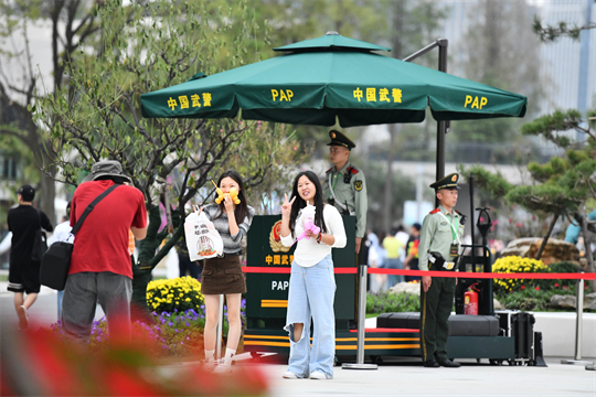 圖為9月26日,武警安徽總隊(duì)合肥支隊(duì)執(zhí)勤官兵在第十四屆中國(合肥)國際園林博覽會(huì)現(xiàn)場定點(diǎn)警戒執(zhí)勤。