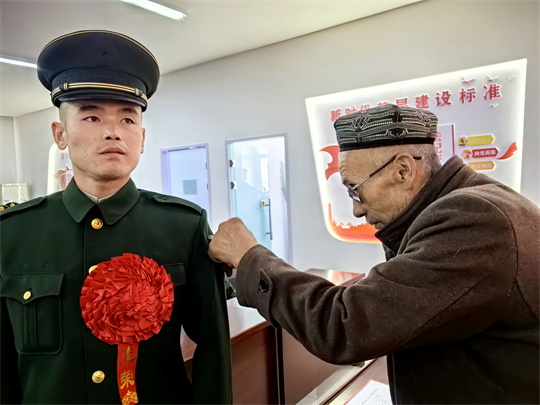 鄧凱忘不了下隊(duì)第一天,班長(zhǎng)告訴他,營(yíng)區(qū)隔壁有位維吾爾族大叔,是中隊(duì)幾十年的好鄰居。當(dāng)天下午,班長(zhǎng)就帶著他敲開(kāi)了卡德?tīng)柎笫寮业拇箝T(mén),打掃院子,幫著喂羊,修補(bǔ)漏雨房頂,為腿腳不方便的老鄰居做一些力所能及的事。