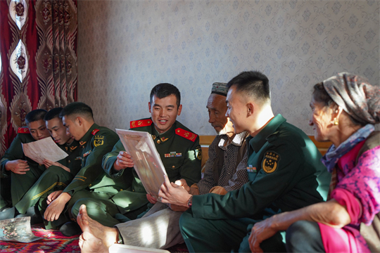 圖為中隊(duì)官兵來(lái)到老鄰居卡德?tīng)柤?,回顧軍民魚(yú)水情。張毅 攝