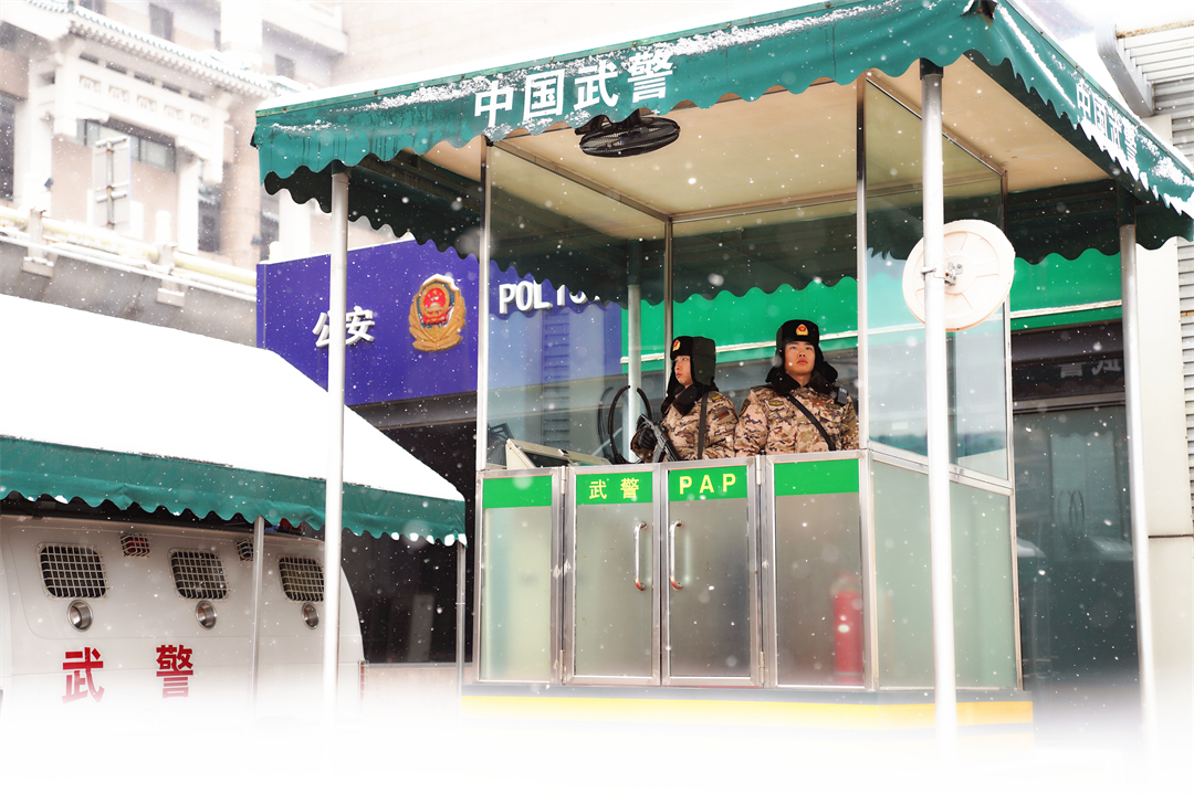 圖為執(zhí)勤武警佇立在哨位上就是一道安全屏障。