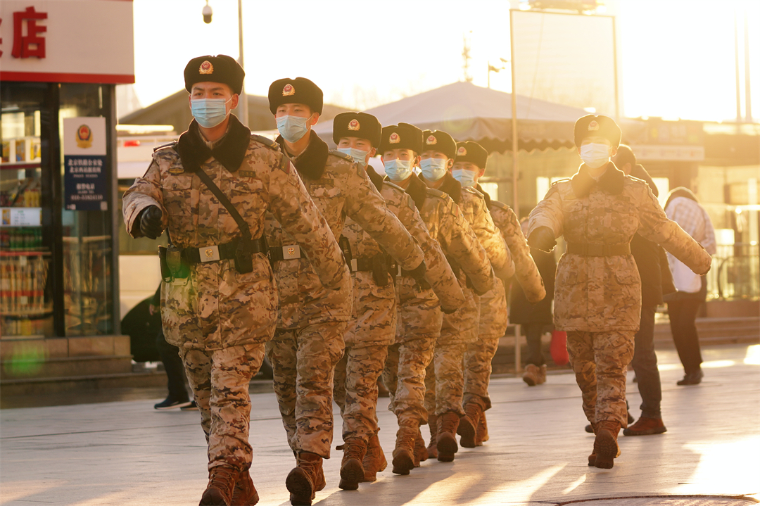 圖為北京西站武警官兵在去往哨位途中。