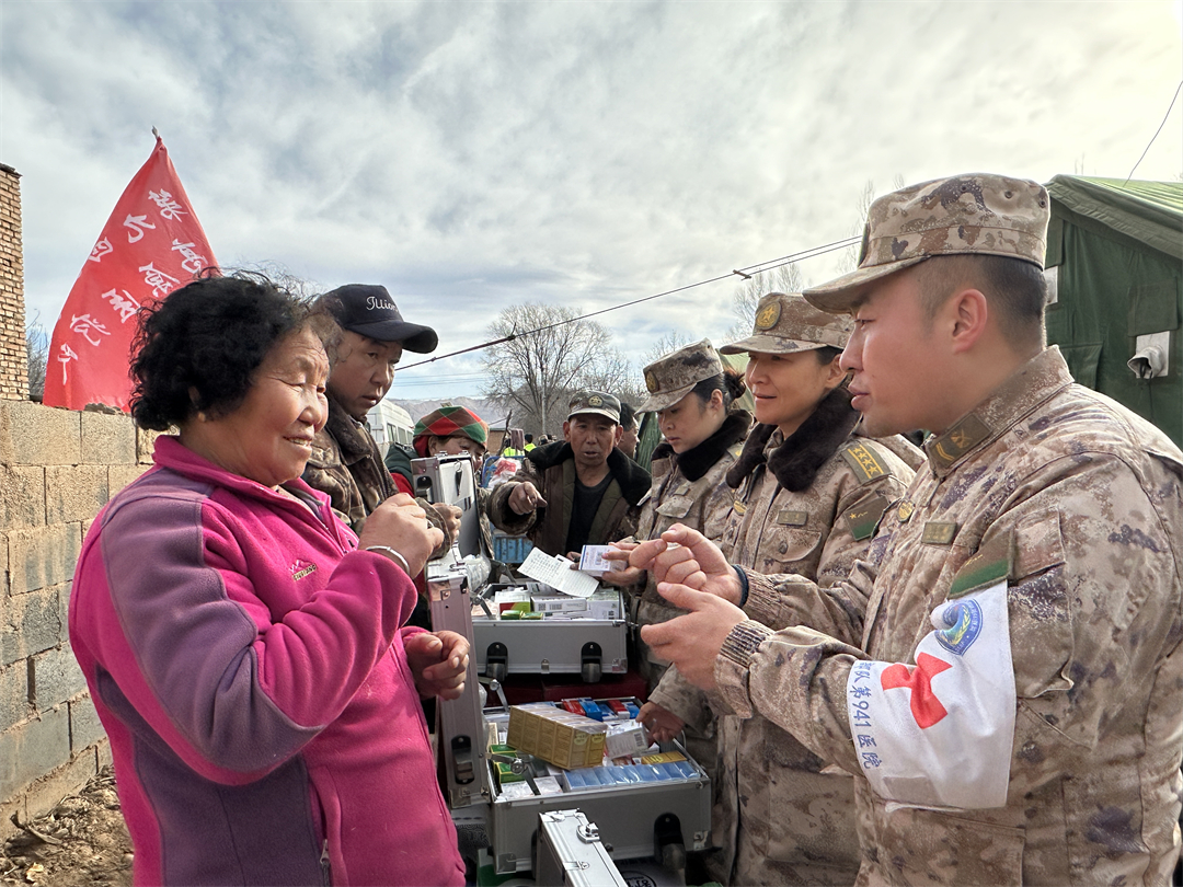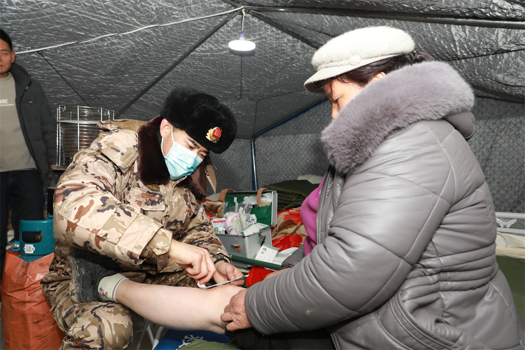 第940醫(yī)院醫(yī)療隊(duì)分赴積石山縣柳溝鄉(xiāng)、石塬鎮(zhèn)、劉集鄉(xiāng)和大河家鎮(zhèn),為受災(zāi)群眾查體診療、送醫(yī)送藥。他們還成立心理服務(wù)隊(duì),在提供健康查體、送醫(yī)送藥等服務(wù)基礎(chǔ)上,為有需要的受災(zāi)群眾開展一對(duì)一心理疏導(dǎo)。為解決偏遠(yuǎn)村莊受災(zāi)群眾就診難的問題,應(yīng)急醫(yī)療分隊(duì)成立黨員先鋒模范醫(yī)療組,翻山越嶺、走村入戶,持續(xù)開展送醫(yī)送診服務(wù)。