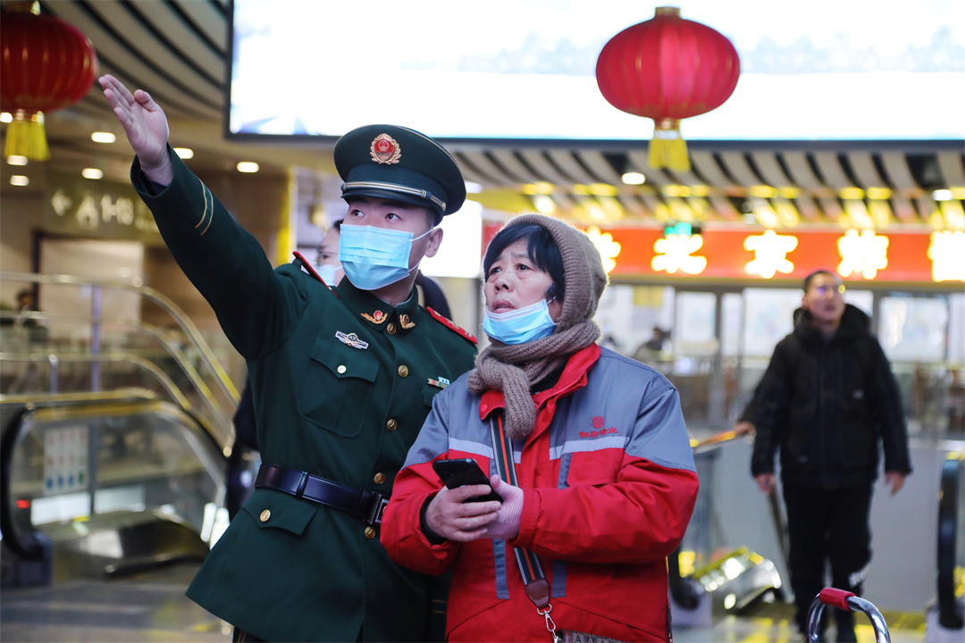 1月26日,全國春運(yùn)正式拉開帷幕。擔(dān)負(fù)北京西站守衛(wèi)任務(wù)和北京豐臺(tái)站定點(diǎn)警戒任務(wù)的武警北京總隊(duì)執(zhí)勤第六支隊(duì)官兵堅(jiān)守執(zhí)勤戰(zhàn)位,熱心為群眾提供幫助,以實(shí)際行動(dòng)溫暖守護(hù)旅客歸鄉(xiāng)路。