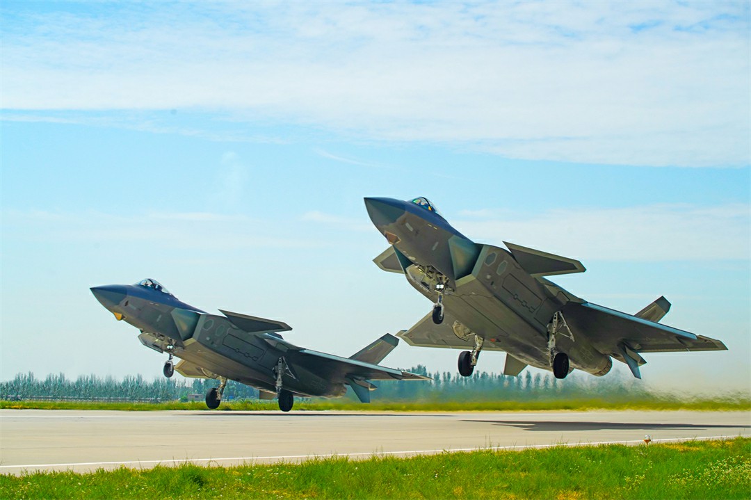 圖為空軍“王海大隊(duì)”飛行員駕駛殲-20戰(zhàn)機(jī)編隊(duì)起飛。王鴻飛 攝
