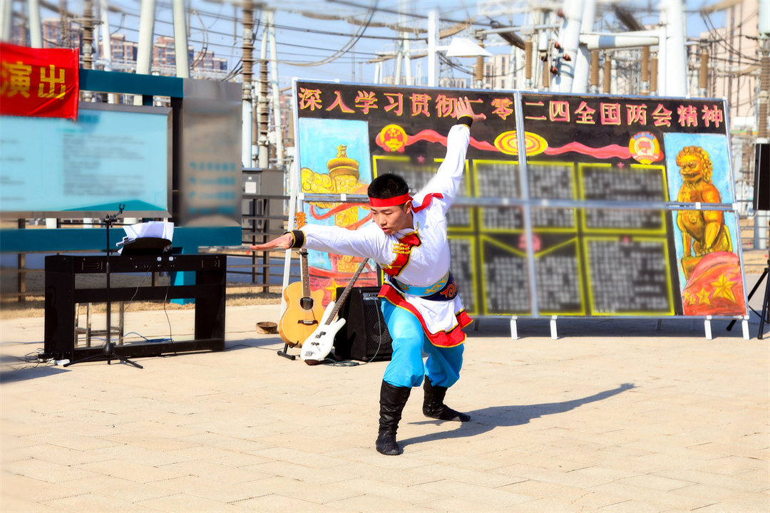 圖為文藝小分隊(duì)來(lái)到任務(wù)一線慰問(wèn)表演。