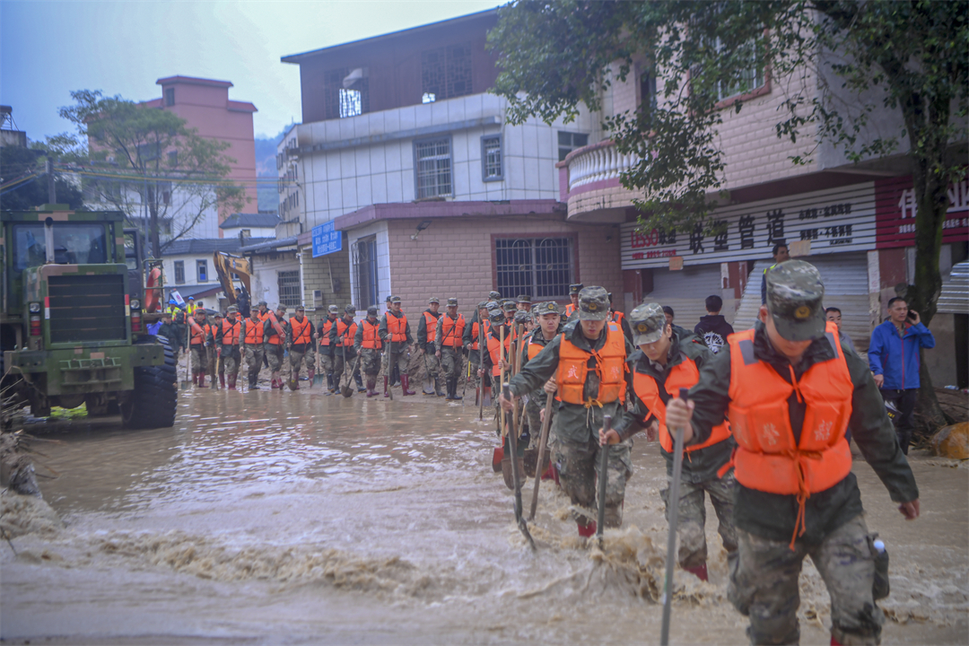 “前面塌方,大家把鞋帶系緊一點,不然陷到泥里拔不出來。”降雨仍在繼續(xù),洪水還未退去。進(jìn)山不到200米,偵察股股長王闖就扯著嗓子喊道,塌方的泥土被雨水沖刷得像一團(tuán)團(tuán)“糨糊”,一腳踩下去就能沒過大腿根部。