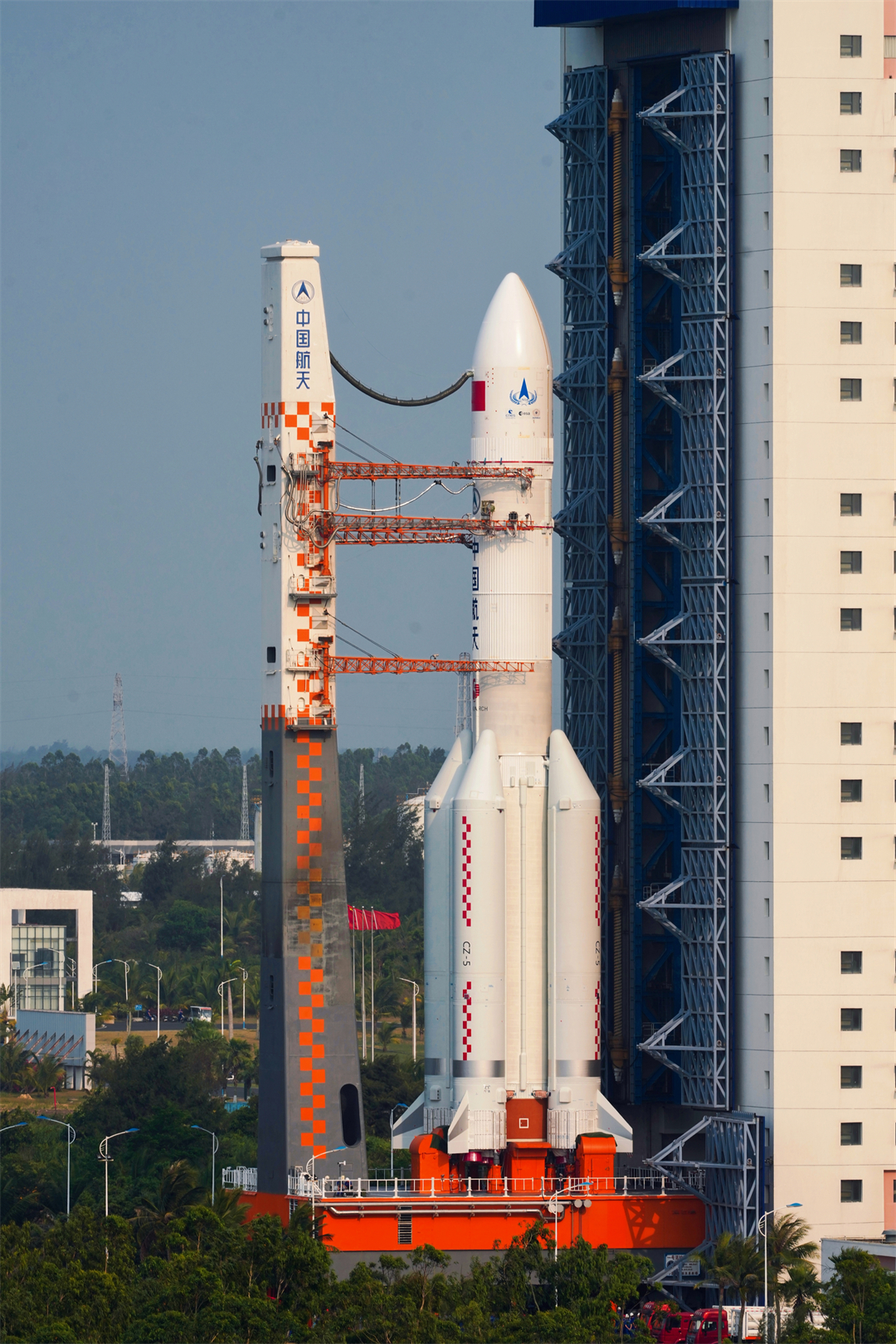 3月12日13時,長征五號遙八火箭搭乘遠(yuǎn)望21號和遠(yuǎn)望22號運輸船順利抵達(dá)海南文昌清瀾港。3月15日,長五遙八火箭通過陸路運輸,安全運抵中國文昌航天發(fā)射場廠房,火箭隨即開始箭體總裝測試工作。