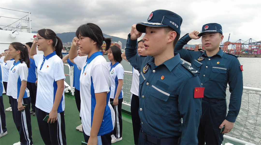 “我志愿加入中國共產(chǎn)主義青年團,堅決擁護中國共產(chǎn)黨的領(lǐng)導(dǎo)……”一聲聲堅定的誓言回蕩在大海上。五四青年節(jié)到來之際,廣東深圳海警局會同共青團羅湖區(qū)委員會、羅湖區(qū)教育局及翠園教育集團數(shù)十名學(xué)生代表,在深圳東部海域開展“青春心向黨·筑夢新時代”主題團日活動暨羅湖區(qū)愛國主義教育綜合實踐基地揭牌儀式,引領(lǐng)廣大青少年弘揚“五四”精神,感悟初心使命。