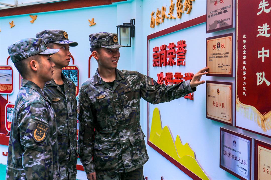 圖為新兵參觀單位榮譽墻。鄒東聲 攝