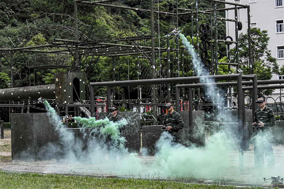 圖為官兵進(jìn)行無(wú)人機(jī)課目演示。