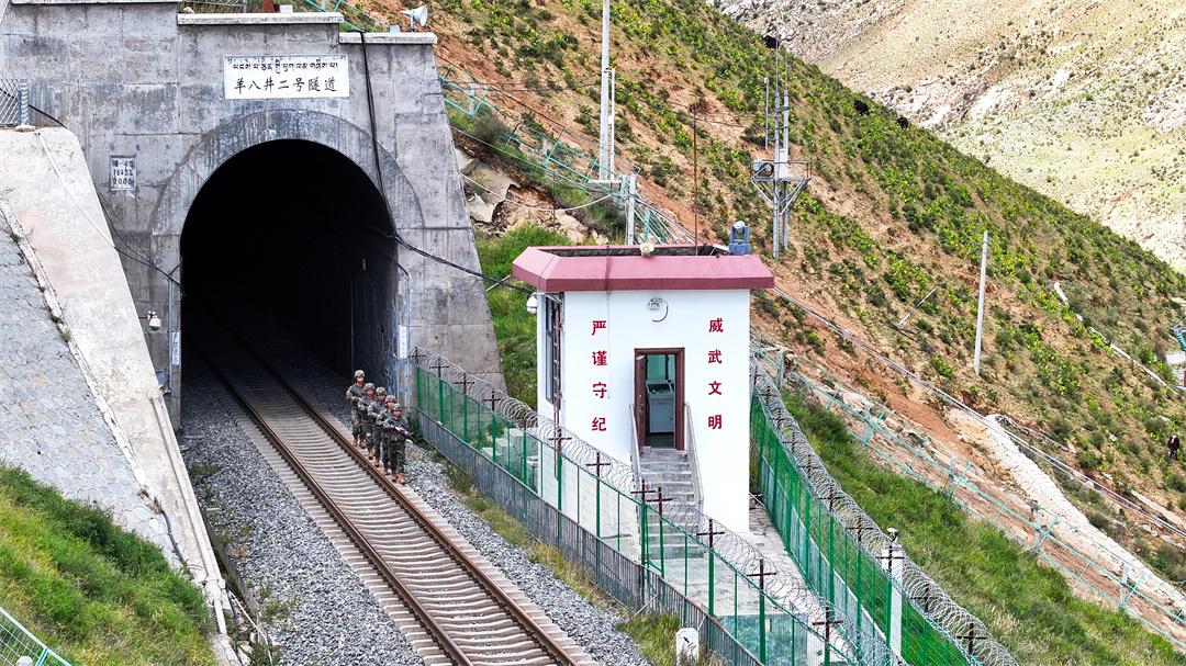 圖為武警官兵守護(hù)青藏鐵路。