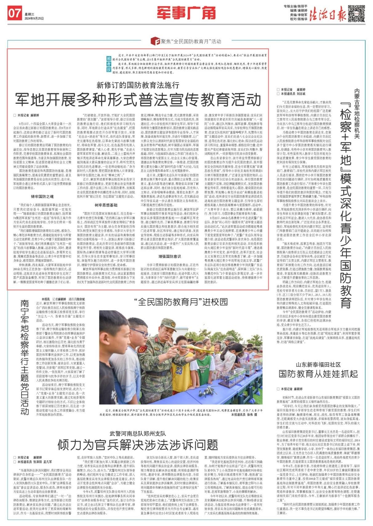 近日,中共中央宣傳部等12部門印發(fā)《關(guān)于組織開展2024年“全民國防教育月”活動(dòng)的通知》,要求以“依法開展國防教育 提升全民國防素養(yǎng)”為主題,在9月集中組織開展“全民國防教育月”活動(dòng)。