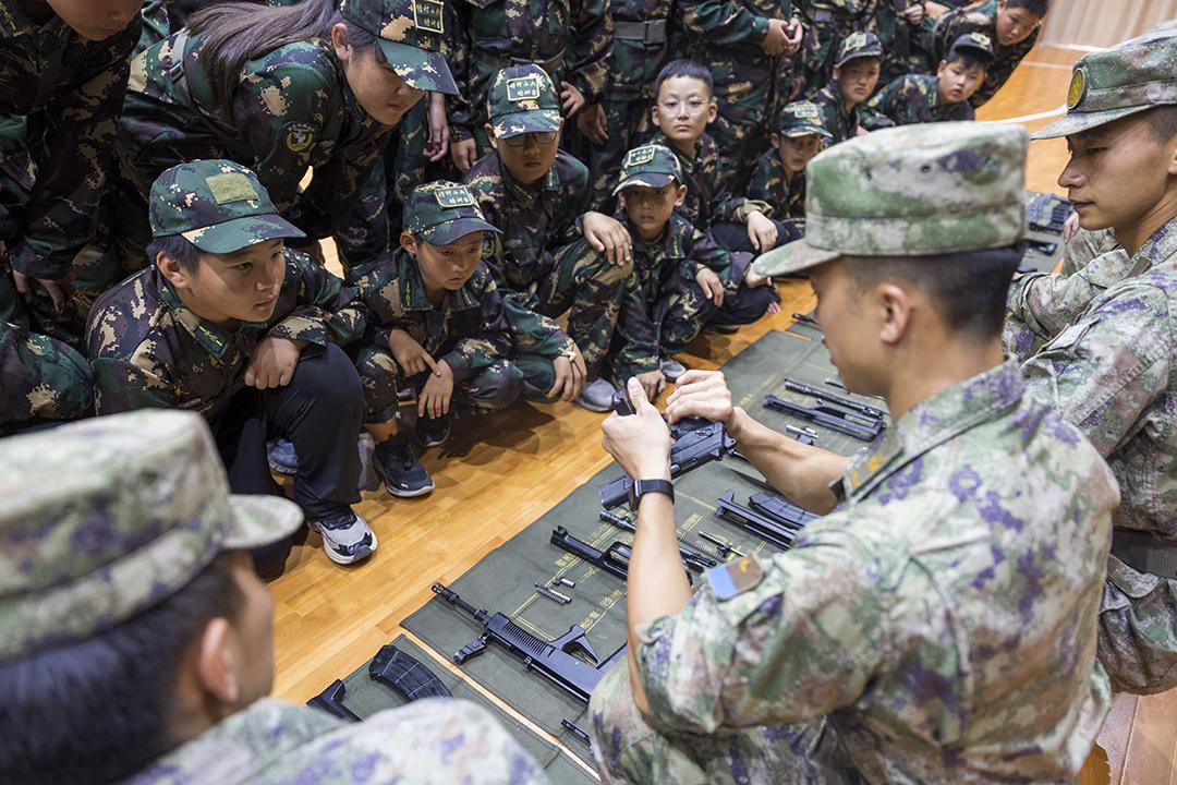 圖為武警廣東總隊(duì)開展“同心同行·強(qiáng)國有我”港澳青少年進(jìn)軍營活動(dòng),港澳青少年參觀武器裝備。劉佳良 金家威 攝