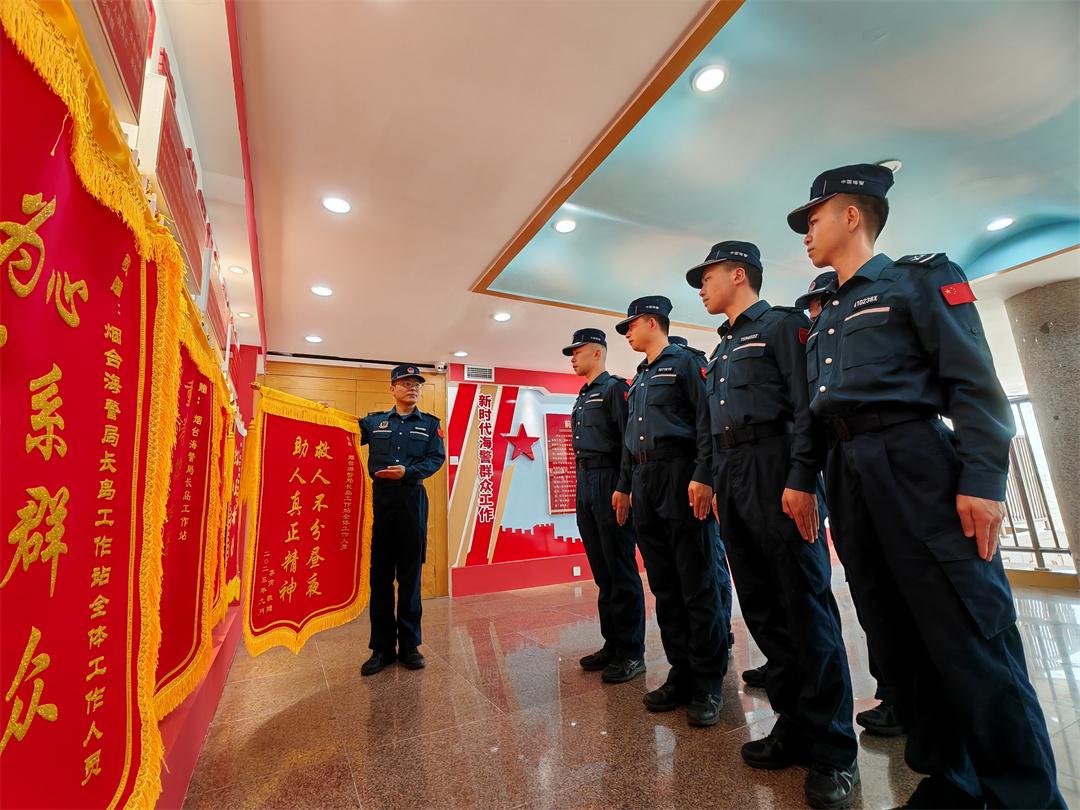 圖為山東煙臺(tái)海警局長島工作站組織執(zhí)法員開展儀式教育。盧煜萱 攝