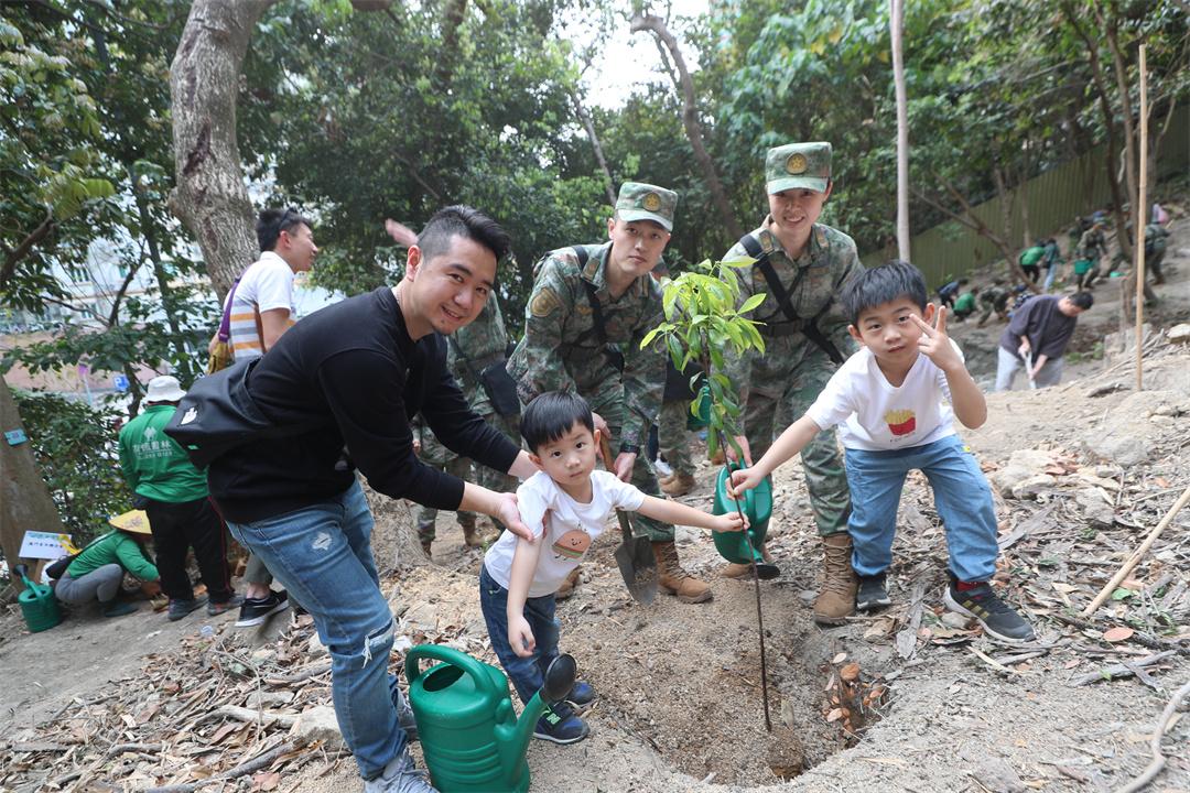 圖為駐澳門部隊組織義務(wù)植樹活動。