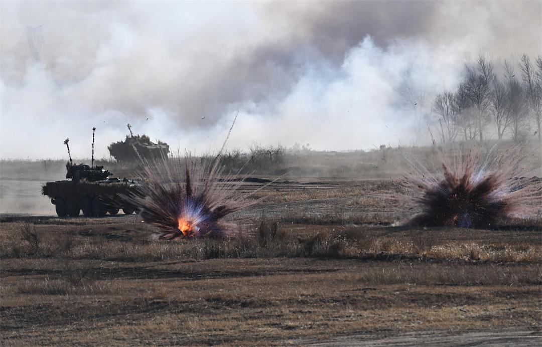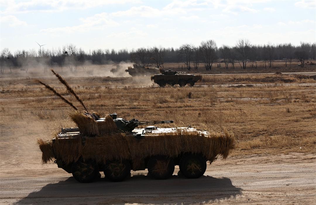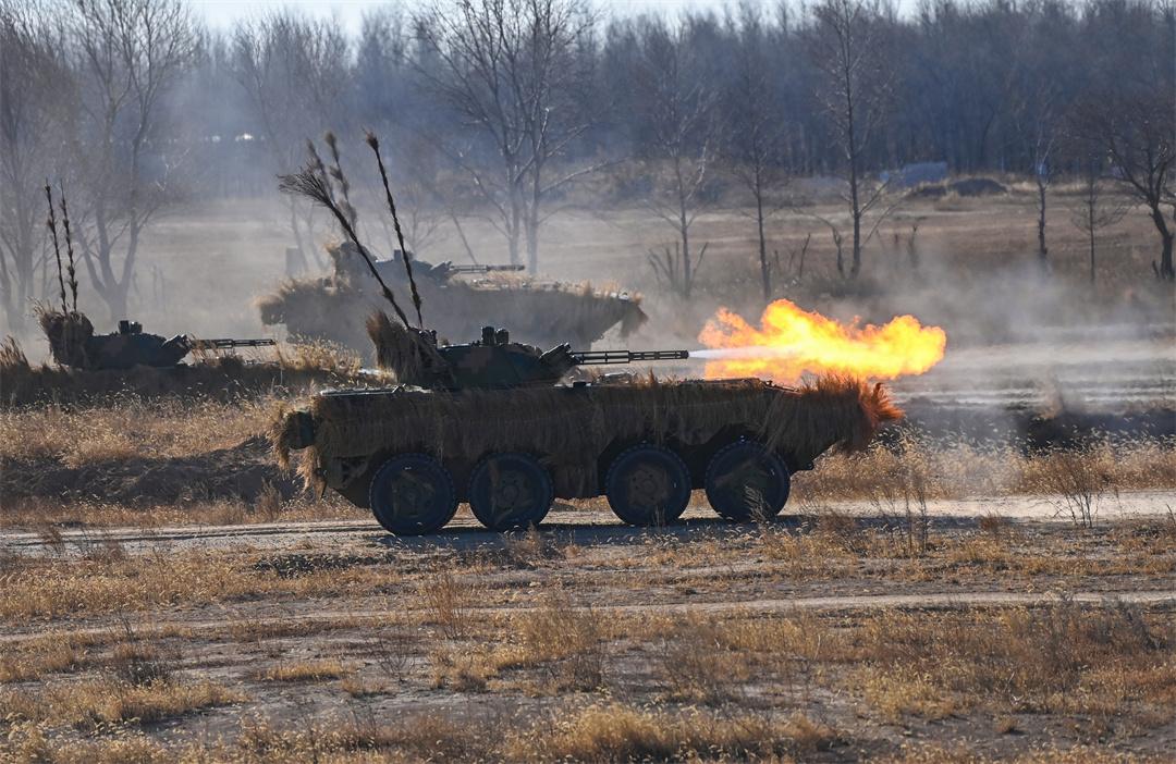 圖為“百戰(zhàn)百勝營”官兵駕駛步戰(zhàn)車進(jìn)行實(shí)彈戰(zhàn)術(shù)綜合演練。
