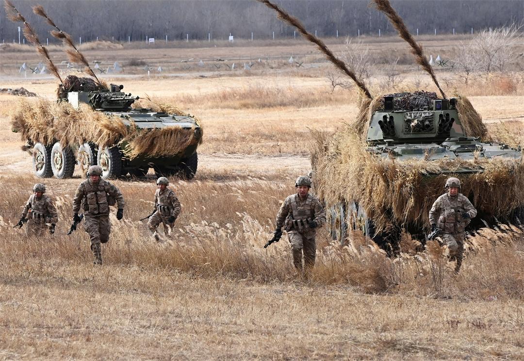 圖為“百戰(zhàn)百勝營”官兵下車勇猛沖擊。