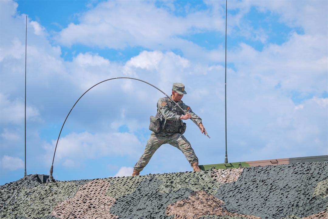 圖為官兵架設(shè)通信天線,快速接通通信鏈路。代龍富 攝