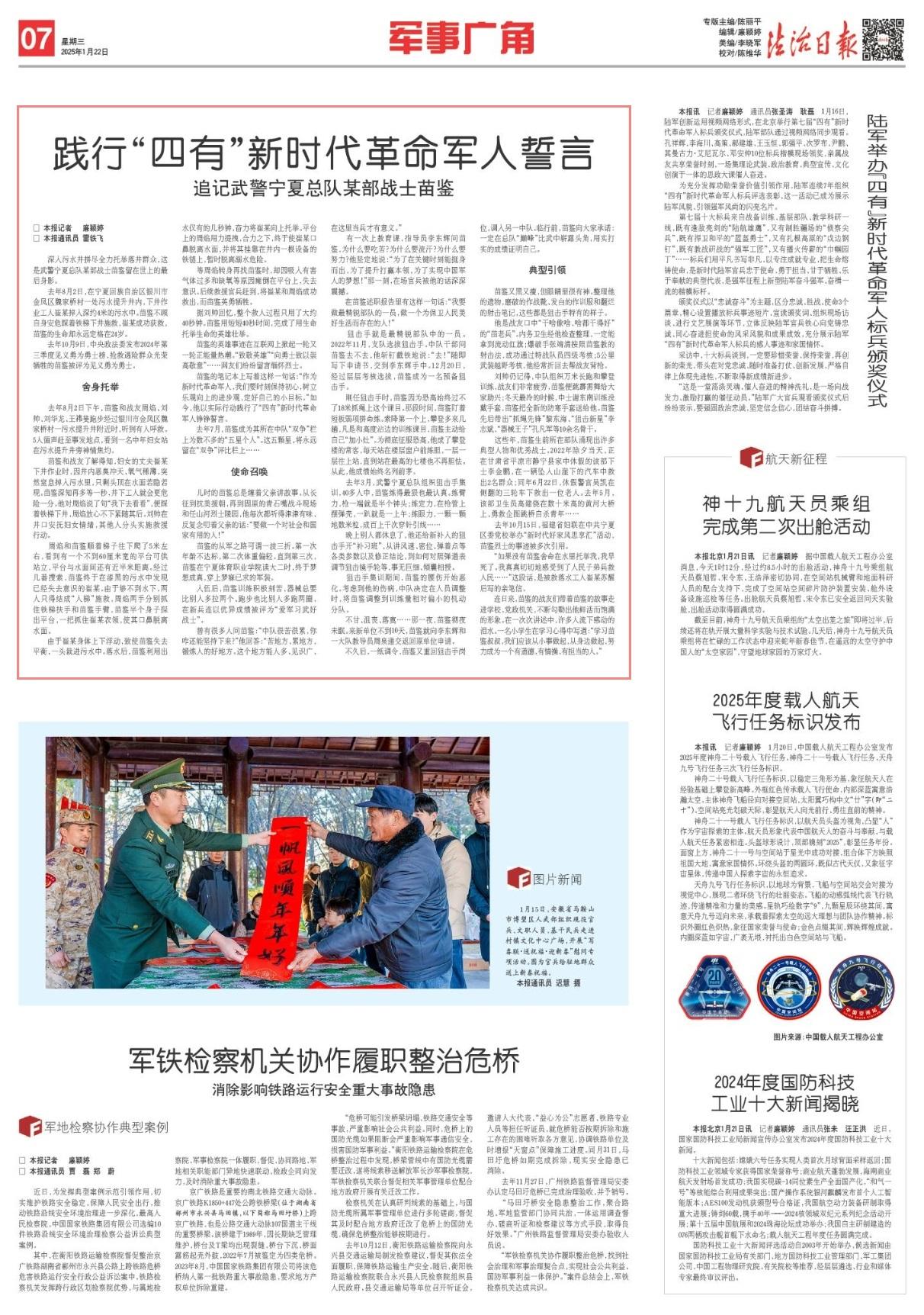這些年,苗鑒生前所在部隊(duì)涌現(xiàn)出許多典型人物和優(yōu)秀戰(zhàn)士。2022年除夕當(dāng)天,正在甘肅省平?jīng)鍪徐o寧縣家中休假的該部下士李金鵬,在一輛墜入山崖下的汽車中救出2名群眾;同年6月22日,休假警官吳凱在側(cè)翻的三輪車下救出一位老人。去年5月,該部衛(wèi)生員高建僥在數(shù)十米高的黃河大橋上,勇救企圖跳橋自殺青年……