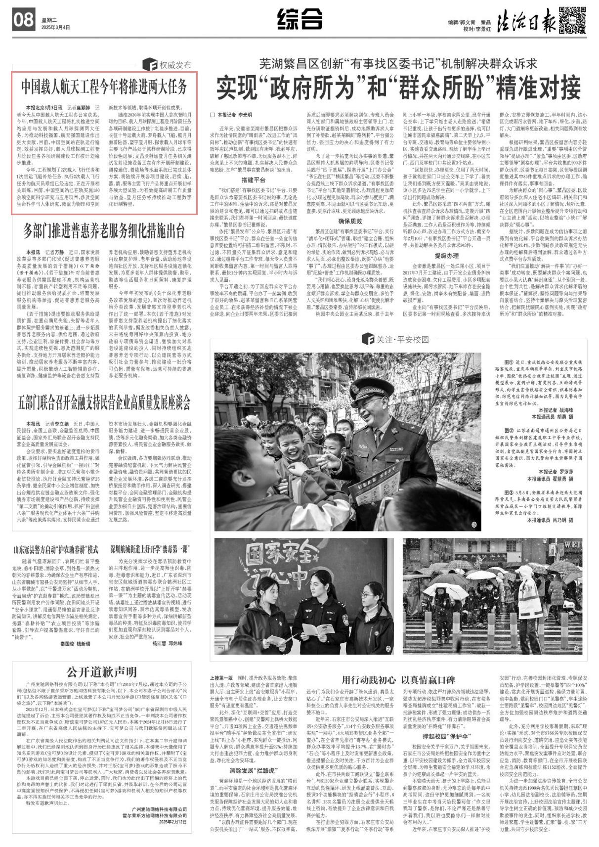 記者3月3日從中國載人航天工程辦公室獲悉,今年,中國載人航天工程將扎實(shí)推進(jìn)空間站應(yīng)用與發(fā)展和載人月球探測兩大任務(wù),為推動(dòng)科技強(qiáng)國、航天強(qiáng)國建設(shè)作出更大貢獻(xiàn)。目前,中國空間站在軌運(yùn)行穩(wěn)定、效益發(fā)揮良好,載人月球探測工程登月階段任務(wù)各項(xiàng)研制建設(shè)工作按計(jì)劃穩(wěn)步推進(jìn)。