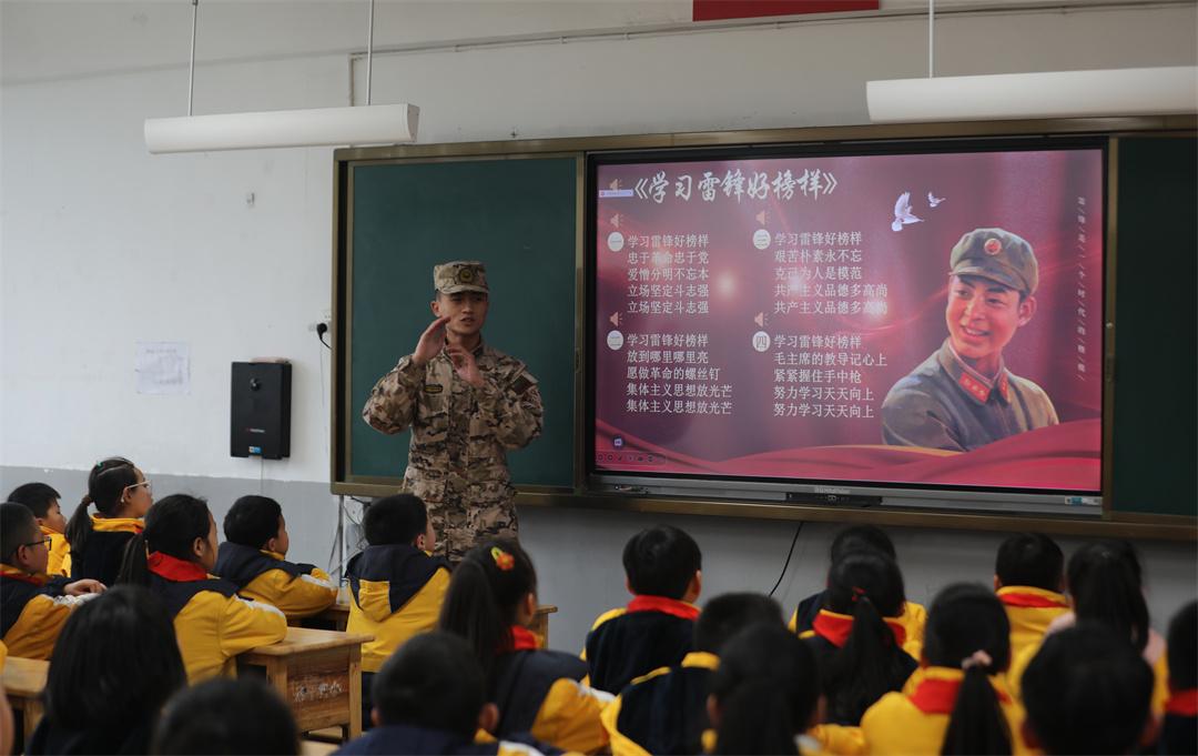 圖為武警官兵來到駐地小學(xué)用雷鋒精神共建共育新人。