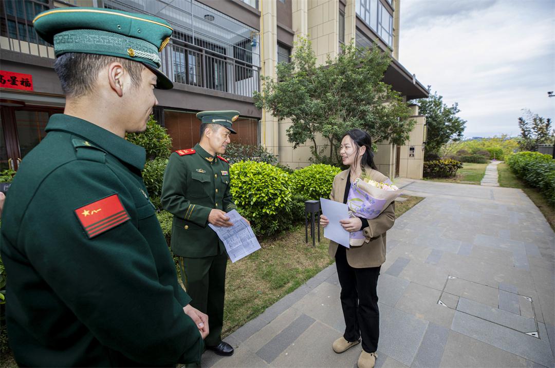圖為官兵向軍屬送去節(jié)日祝福。