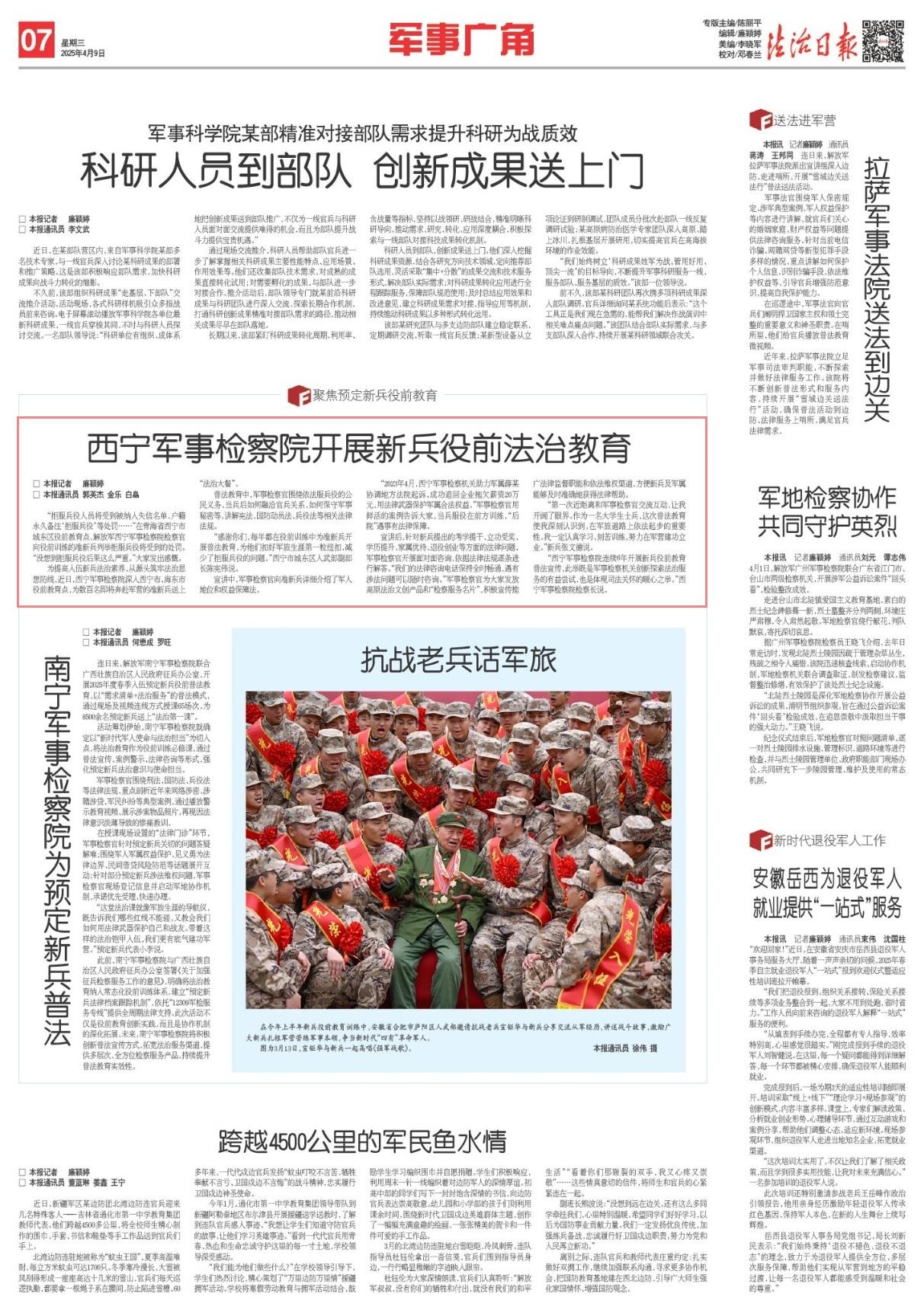 “2023年4月,西寧軍事檢察機(jī)關(guān)助力軍屬薛某協(xié)調(diào)地方法院起訴,成功追回企業(yè)拖欠薪資20萬元,用法律武器保護(hù)軍屬合法權(quán)益?!避娛聶z察官用鮮活的案例告訴大家,當(dāng)兵服役在前方訓(xùn)練,“后院”遇事有法律保障。