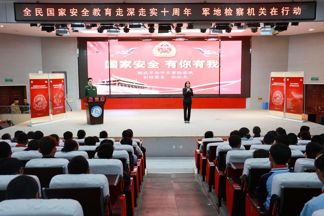 活動中,軍地檢察官從國家安全法講起,采取參觀宣傳展板、輔導(dǎo)授課等形式,深入淺出介紹與師生息息相關(guān)的政治安全、軍事安全等20個(gè)方面內(nèi)容;通過有獎(jiǎng)競答寓教于樂,發(fā)放國家安全宣傳折頁,贈送法治服務(wù)文創(chuàng)產(chǎn)品,使廣大師生了解掌握國家安全相關(guān)知識。
