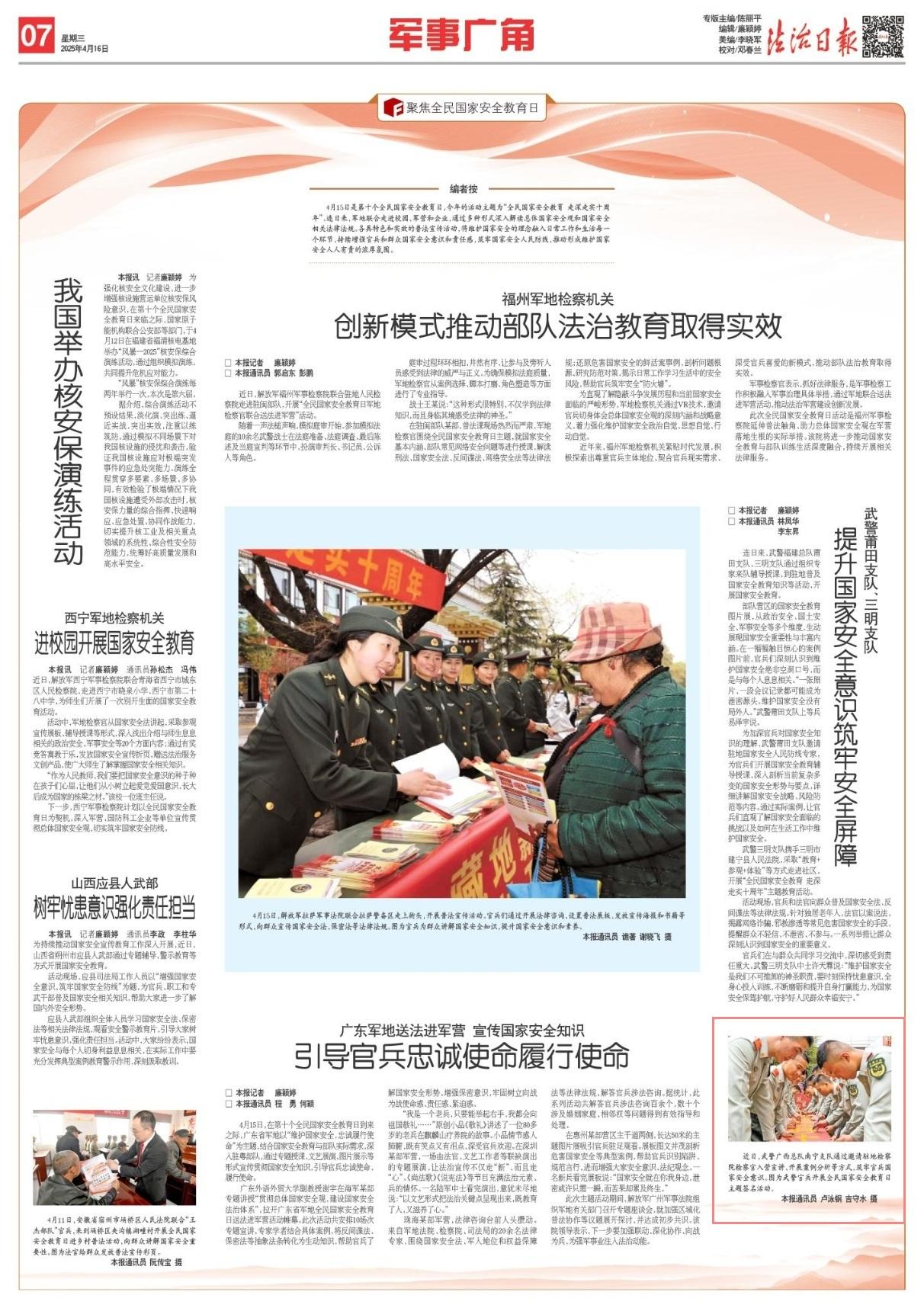 圖為武警官兵開展國家安全教育普法活動。