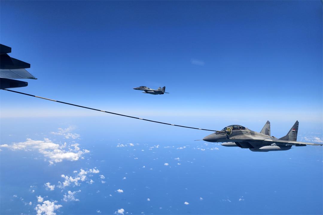 圖為4月28日,參加中?!拔拿髦?2025”空軍聯(lián)合訓(xùn)練的中國空軍運油-20飛機和埃及空軍米格-29飛機進(jìn)行空中加油訓(xùn)練。余紅春 攝