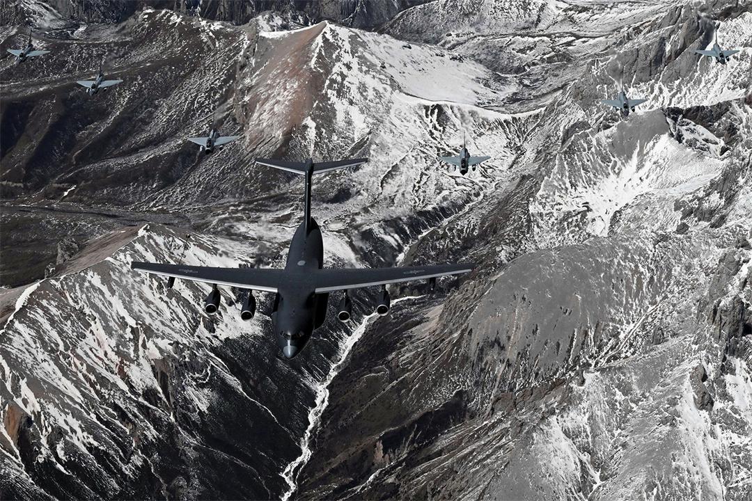 圖為4月12日,中國境內(nèi),參加中埃“文明之鷹-2025”空軍聯(lián)合訓(xùn)練的運油-20和殲-10戰(zhàn)機編隊飛躍雪山。余紅春 攝