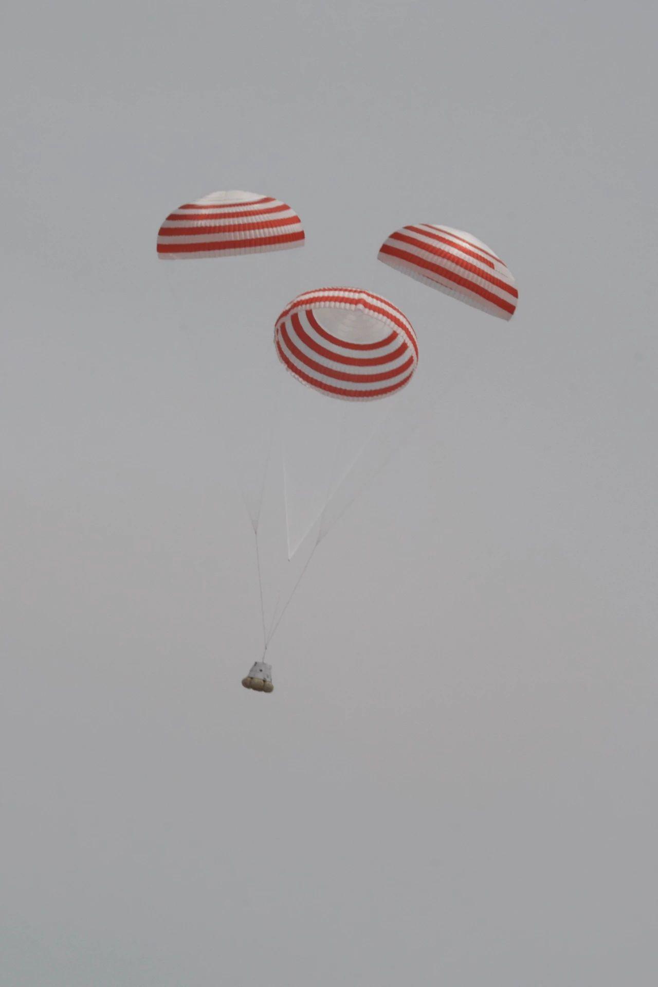 12時(shí)30分,下達(dá)點(diǎn)火指令,夢(mèng)舟載人飛船逃逸發(fā)動(dòng)機(jī)成功點(diǎn)火,船塔組合體在固體發(fā)動(dòng)機(jī)推動(dòng)下騰空而起,約20秒后達(dá)到預(yù)定高度,返回艙與逃逸塔實(shí)現(xiàn)安全分離,降落傘順利展開(kāi)。12時(shí)32分,返回艙使用氣囊緩沖方式安全著陸于試驗(yàn)落區(qū)預(yù)定區(qū)域,試驗(yàn)取得圓滿成功。