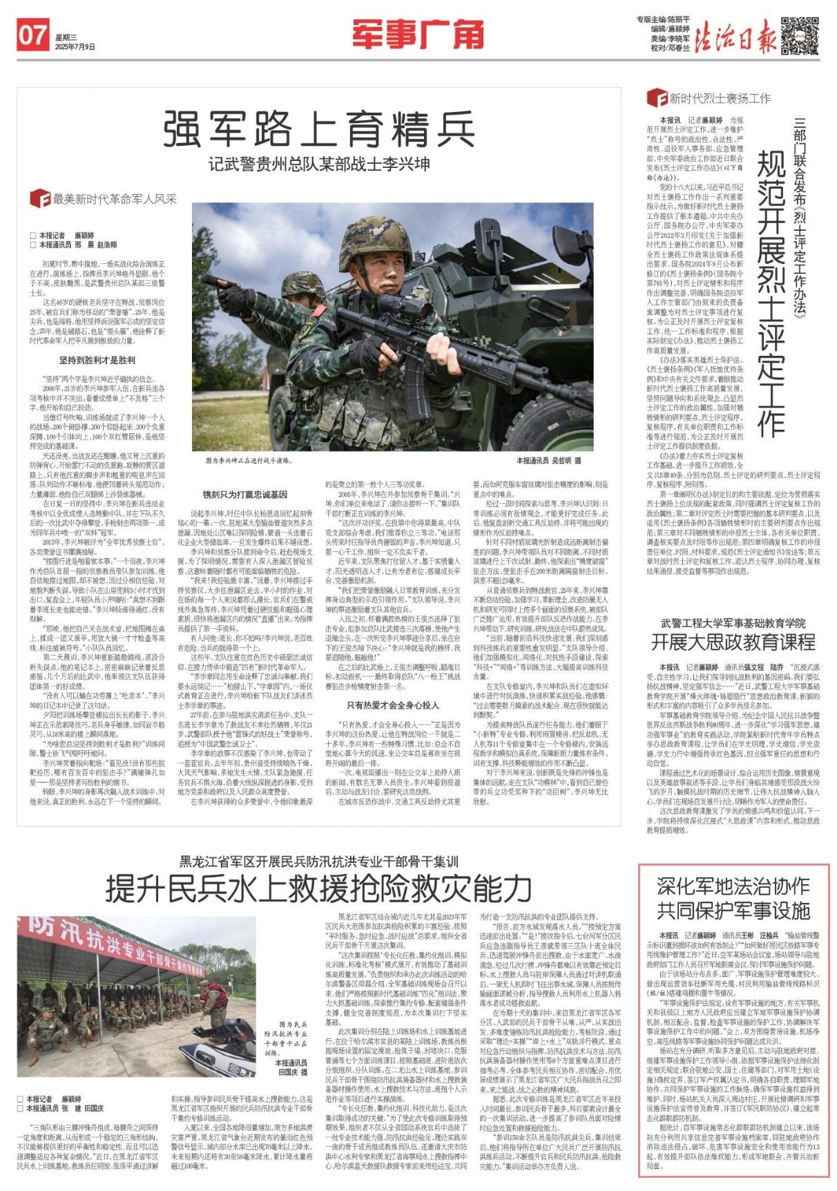 “軍事設(shè)施保護法規(guī)定,設(shè)有軍事設(shè)施的地方,有關(guān)軍事機關(guān)和縣級以上地方人民政府應(yīng)當建立軍地軍事設(shè)施保護協(xié)調(diào)機制,相互配合,監(jiān)督、檢查軍事設(shè)施的保護工作,協(xié)調(diào)解決軍事設(shè)施保護工作中的問題?!睍希p方圍繞營房設(shè)施、機場凈空、高壓線路等軍事設(shè)施協(xié)同保護問題達成共識。
