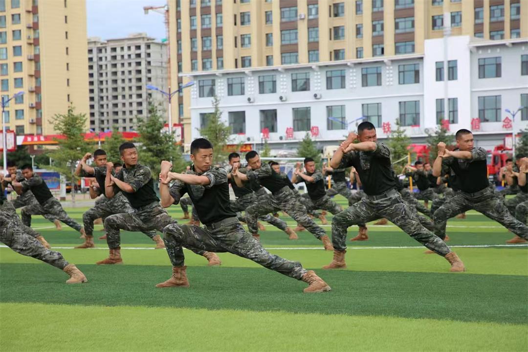 在武警興安支隊課目演示環(huán)節(jié),官兵們擒敵拳、刺殺操等課目霸氣凌厲、氣勢恢宏,展現(xiàn)出嚴(yán)謹(jǐn)扎實的戰(zhàn)斗作風(fēng)和奮發(fā)有為的精神風(fēng)貌。