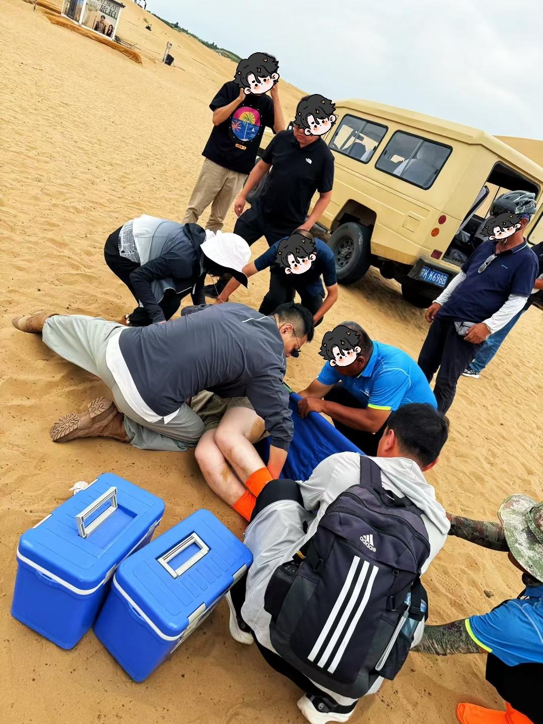 當(dāng)日下午,一名30多歲女游客帶著三歲兒子體驗景區(qū)駱駝騎行項目時,因駱駝突然受驚失衡,母子二人從駝背上墜落倒地,情況十分危急。景區(qū)工作人員雖然第一時間抵達(dá)現(xiàn)場,但因缺乏專業(yè)醫(yī)療知識,無法及時進行有效救治。