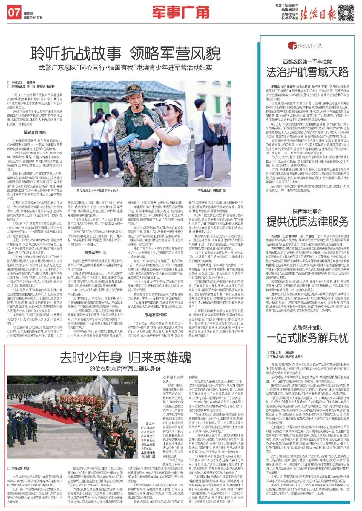 在沈陽就讀的臺(tái)胞學(xué)生馬靖雯告訴記者:“瞻仰著覆蓋國旗的棺槨,我內(nèi)心深感震撼。年輕的生命在異國他鄉(xiāng)浴血奮戰(zhàn),用犧牲換來了我們今天的和平。這一刻,我對(duì)‘家國’二字有了更深的體悟。作為新時(shí)代青少年,我們要不忘根脈、銘記歷史,勇?lián)姑?、攜手奮進(jìn),為實(shí)現(xiàn)中華民族偉大復(fù)興貢獻(xiàn)青春力量?!?/p>