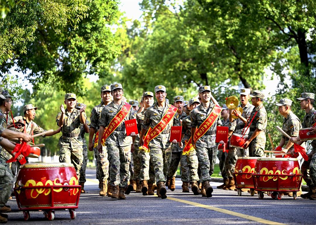 圖為火箭軍某旅發(fā)射二營(yíng)參賽官兵比武奪魁載譽(yù)歸來(lái),受到戰(zhàn)友們熱烈歡迎。劉明松 攝