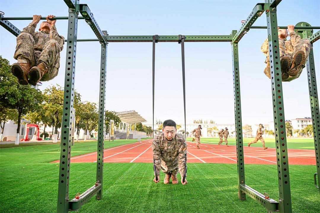 圖為火箭軍某旅發(fā)射二營(yíng)開展戰(zhàn)斗體能訓(xùn)練,不斷提高官兵作戰(zhàn)能力。劉明松 攝