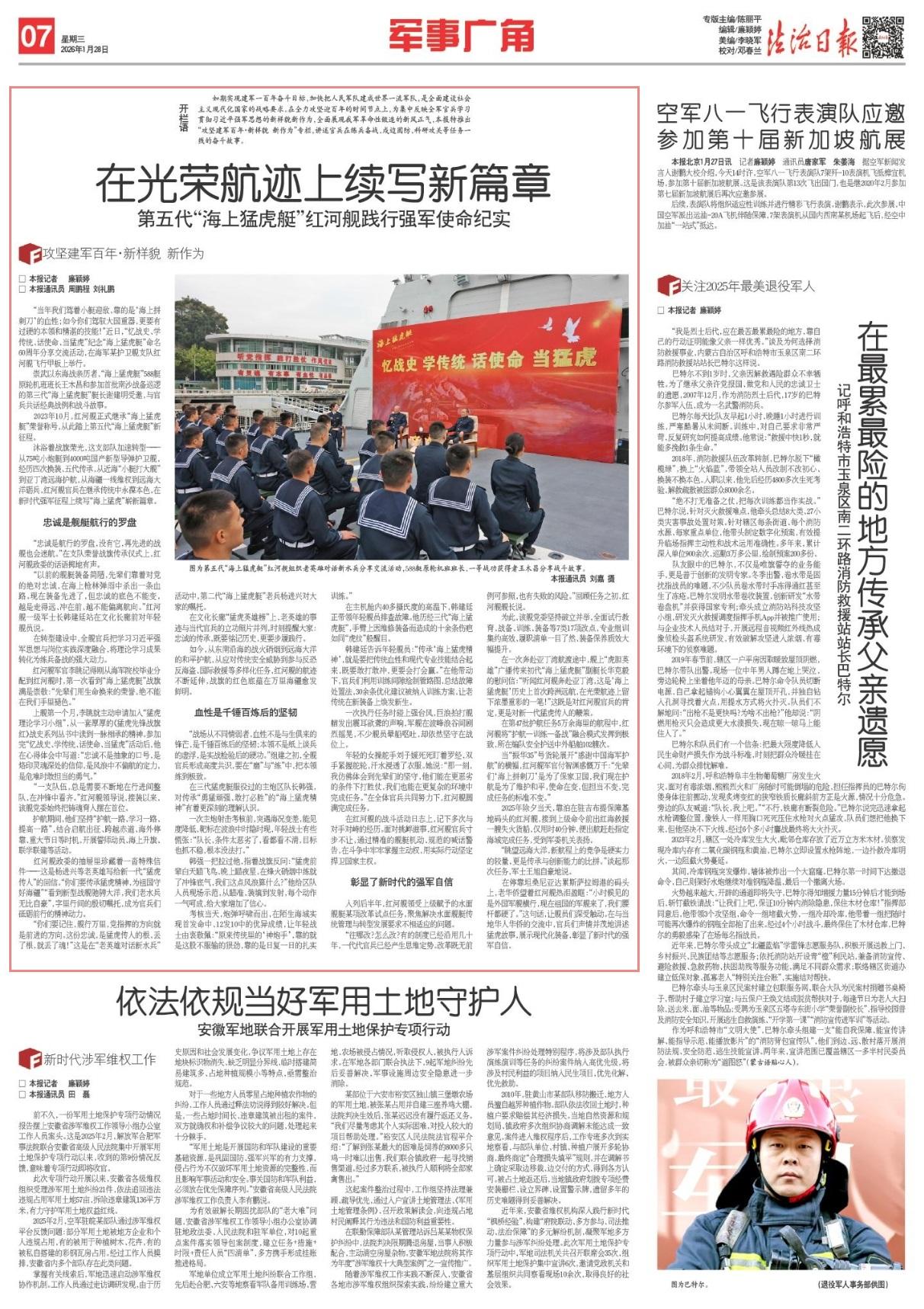 如今,從東南沿海的戰(zhàn)火硝煙到遠海大洋的和平護航,從應(yīng)對傳統(tǒng)安全威脅到參與反恐反海盜、國際救援等多樣化任務(wù),紅河艦的航跡不斷延伸,戰(zhàn)旗的紅色底蘊在萬里海疆愈發(fā)鮮明。
