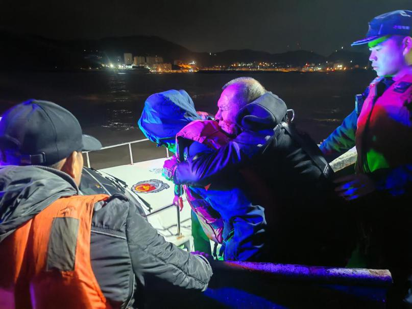 圖為海警執(zhí)法員救助海上受傷漁民。王笑楠 攝