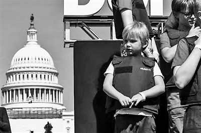 6月6日,學(xué)生們身穿防彈衣在美國華盛頓國會大廈前參加抗議活動,要求加強槍支管控立法